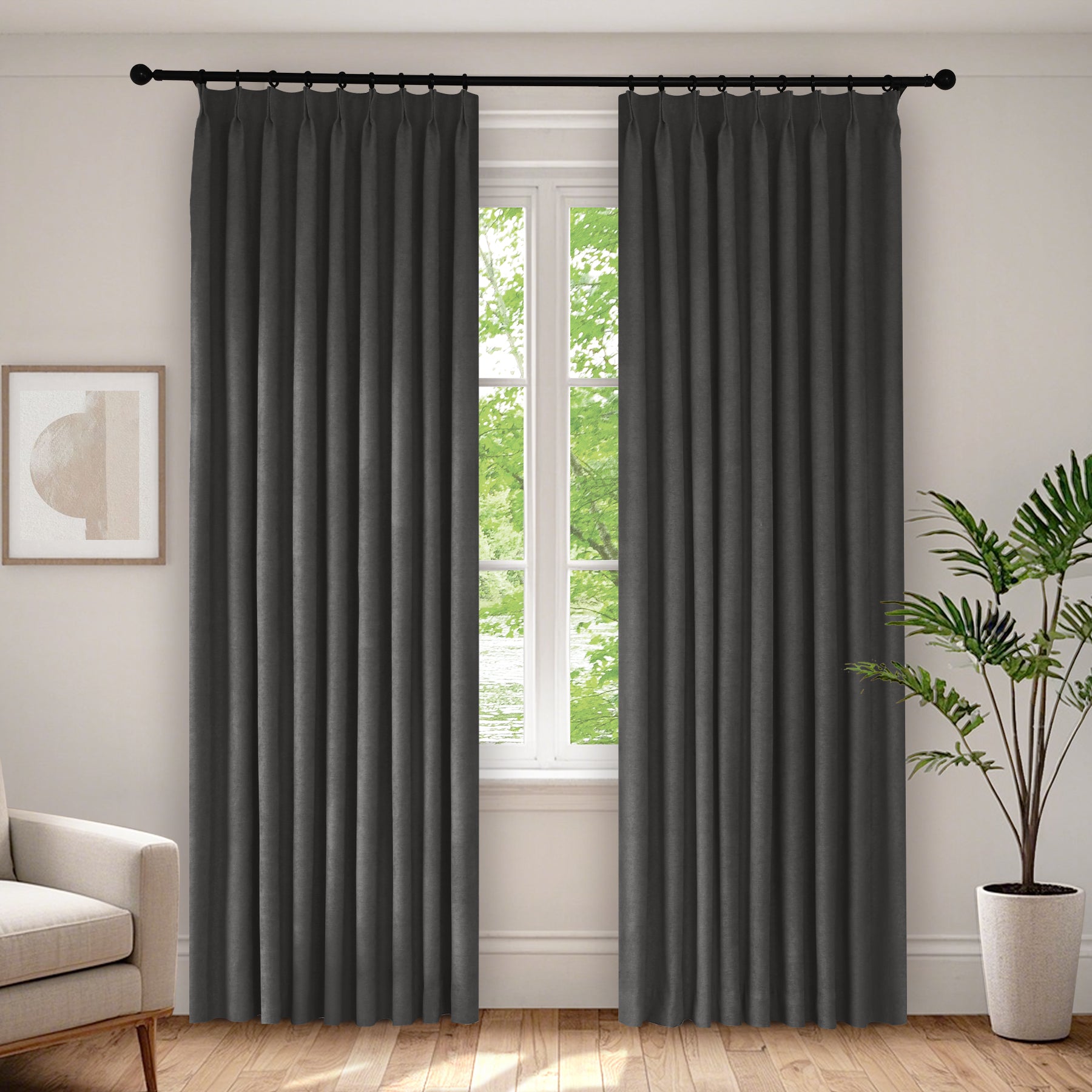 1041 100% Blackout Soft Chenille Linen Blend Curtain Pinch Pleat