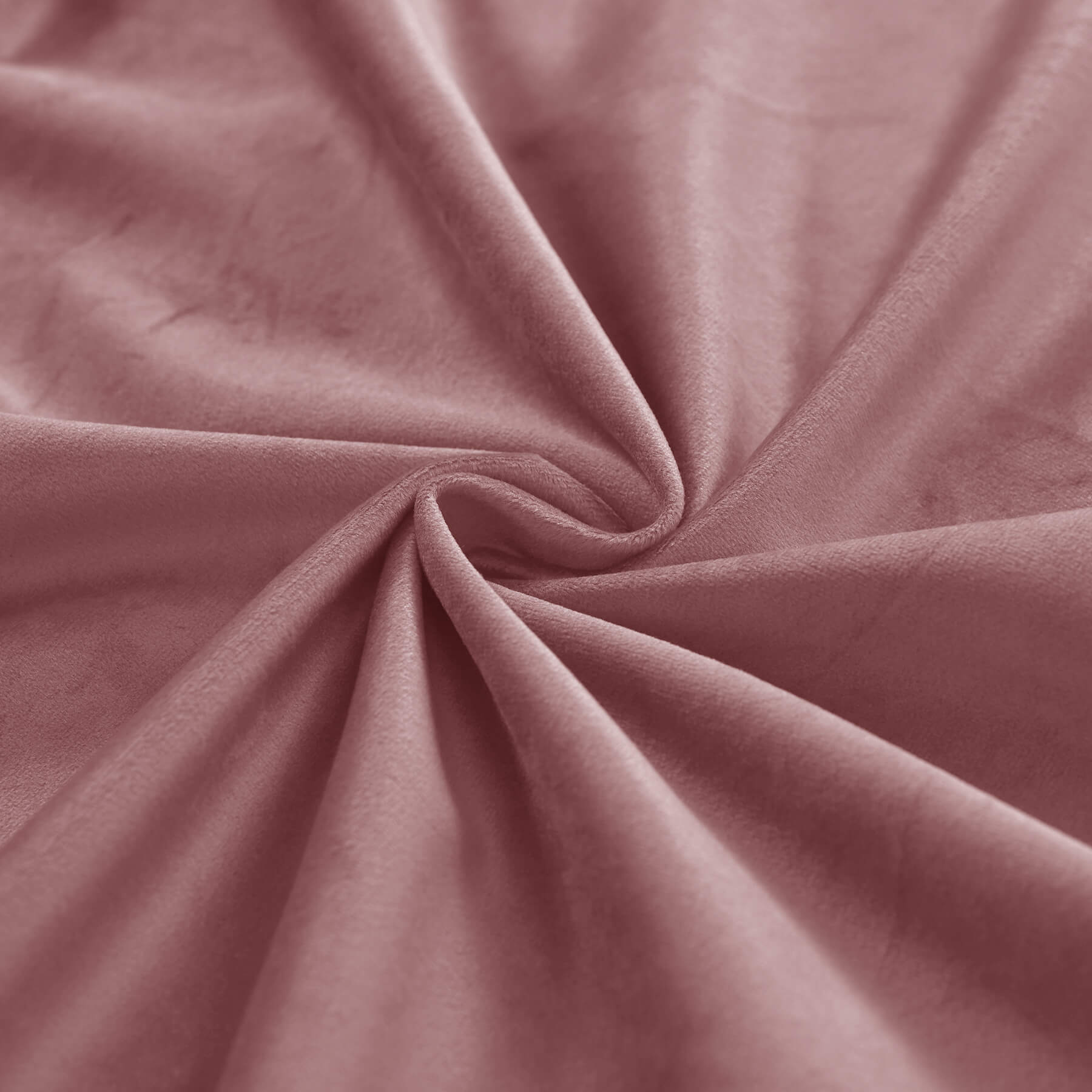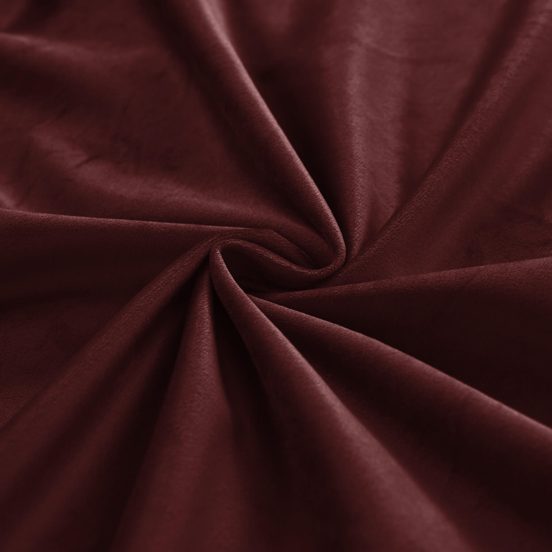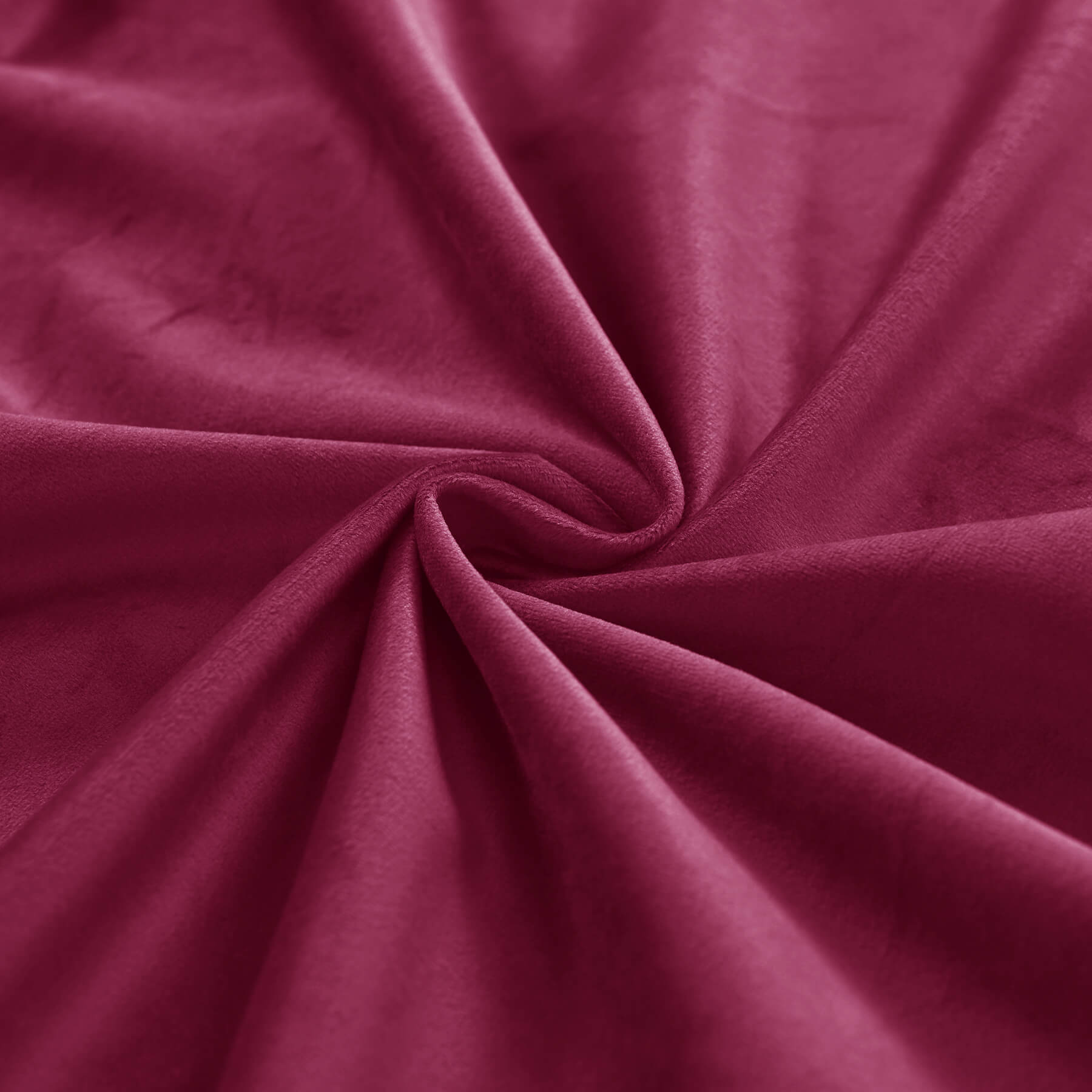 Soft plush pile with luxurious look, natural, no stimulation to the skin, in line with environmental and health requirements, is very close to the skin, smooth and soft. Nap down or nap up, it will produce 2 different feelings. The colors of the curtains look different depending on the light. Front color of velvet fabric is similar to back color. And no fluff on the back.