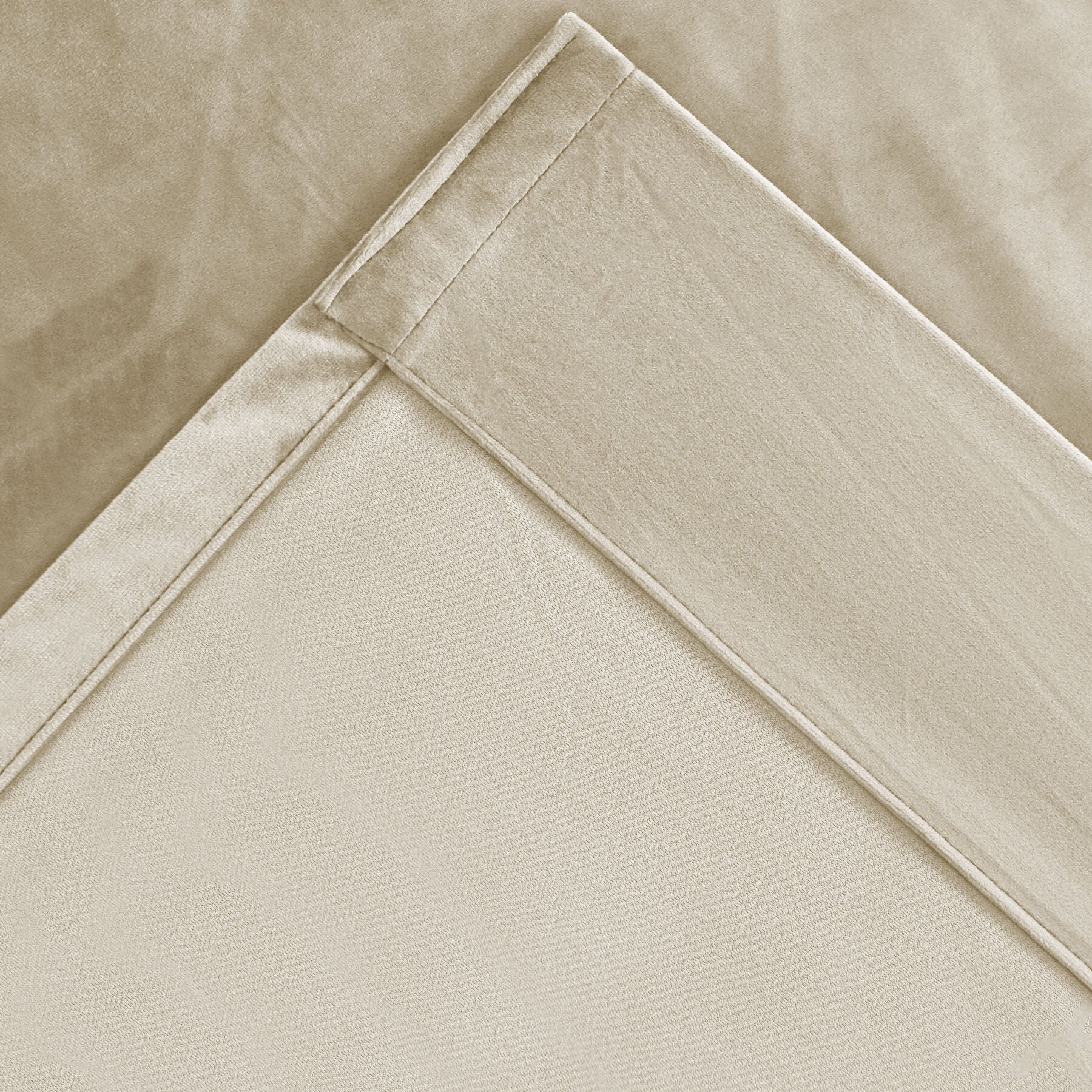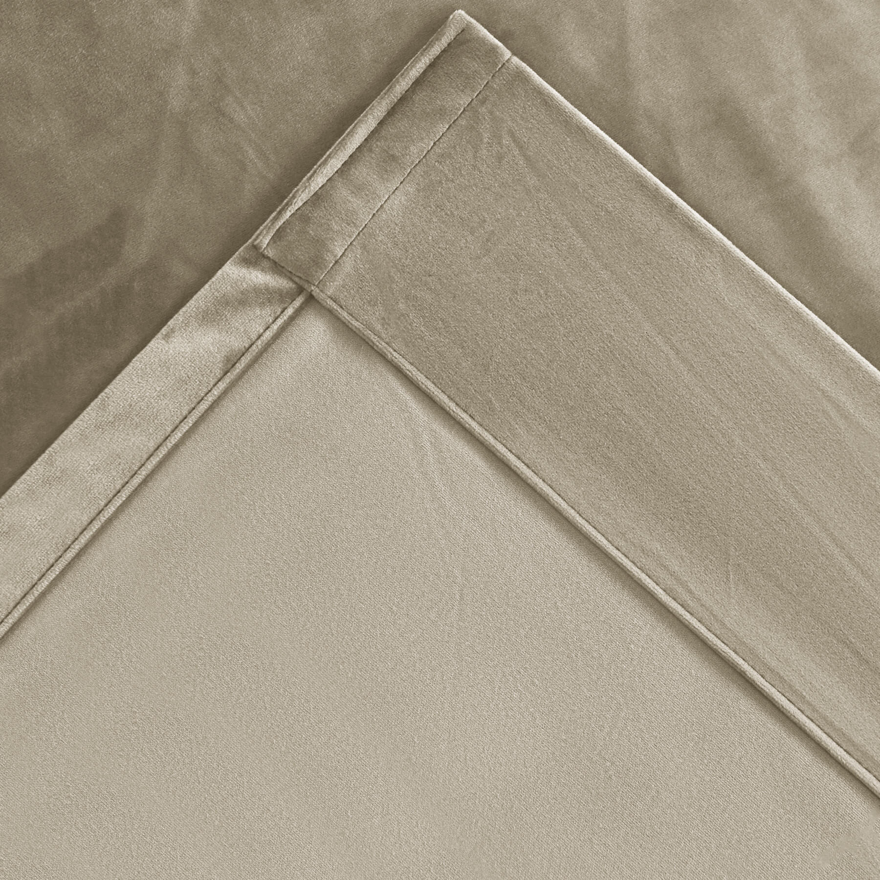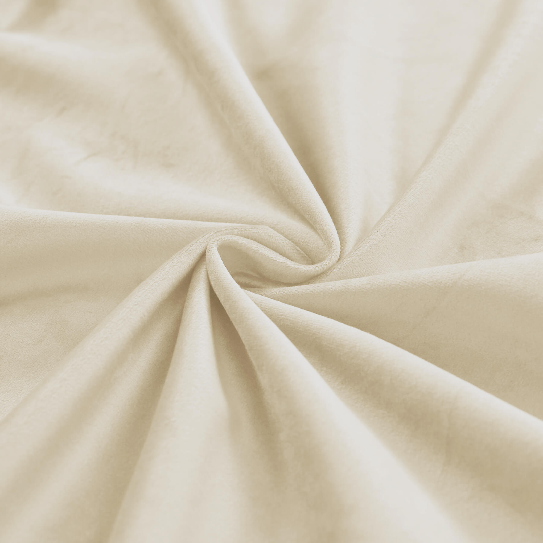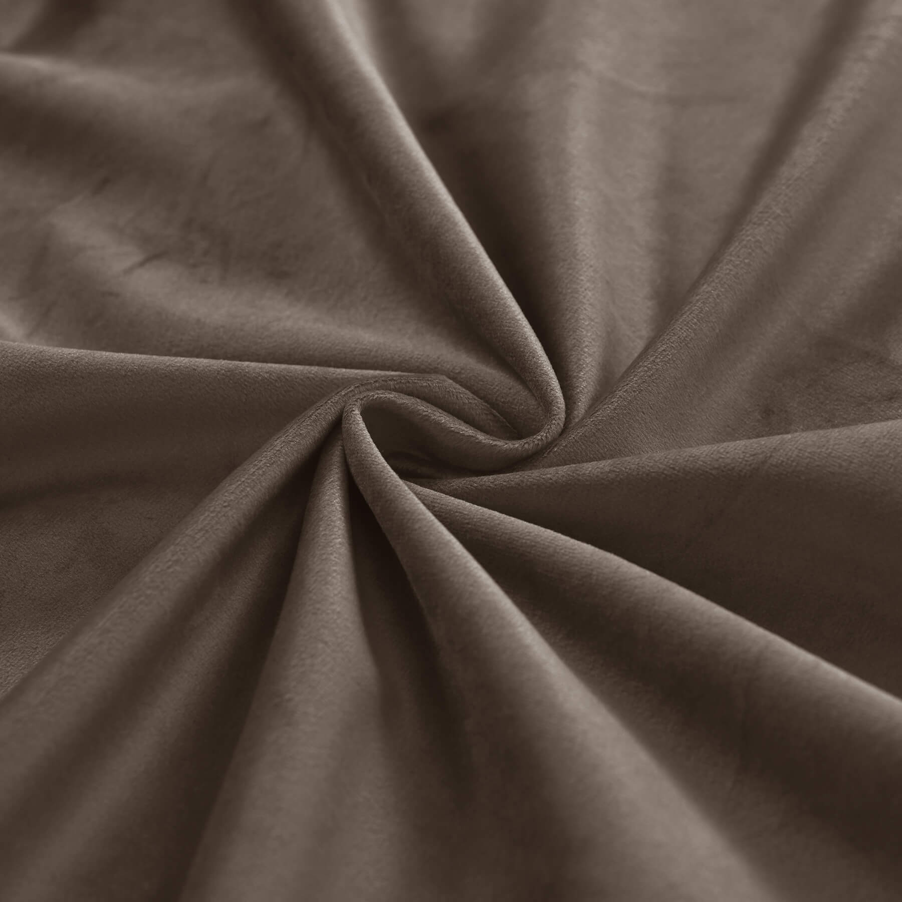 Soft plush pile with luxurious look, natural, no stimulation to the skin, in line with environmental and health requirements, is very close to the skin, smooth and soft. Nap down or nap up, it will produce 2 different feelings. The colors of the curtains look different depending on the light. Front color of velvet fabric is similar to back color. And no fluff on the back.