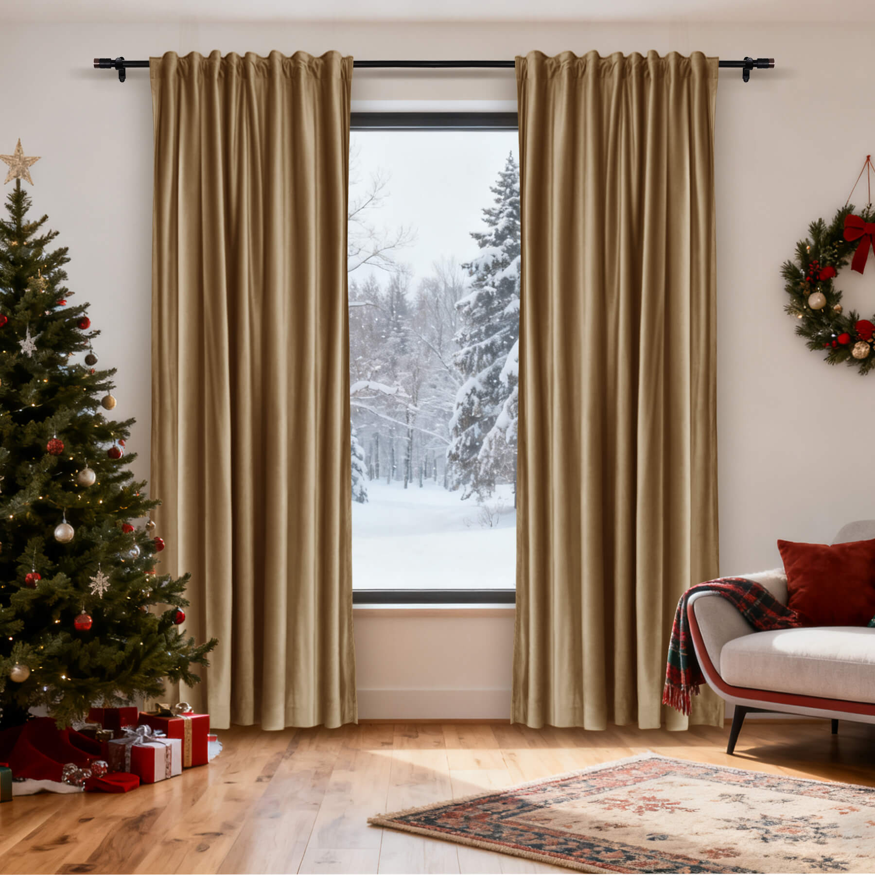 Add warmth and elegance to your home this holiday season with our luxurious velvet curtains